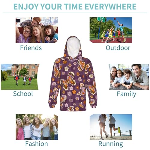 Buffalo Plaid and Butterflys Kids Pullover Hoodies Boys Sweatshirts Girls Athletic Clothes with Pocket 4