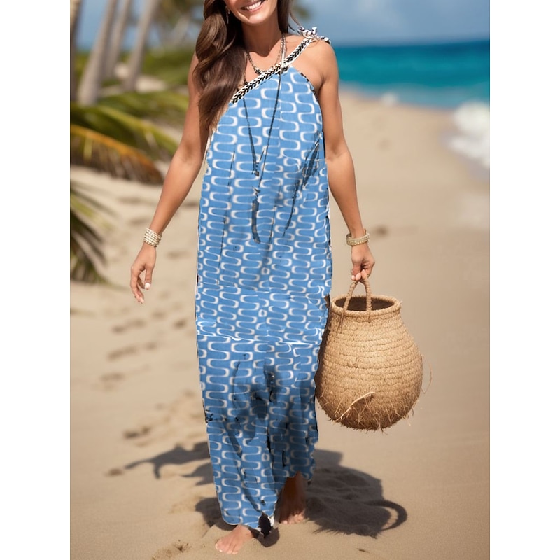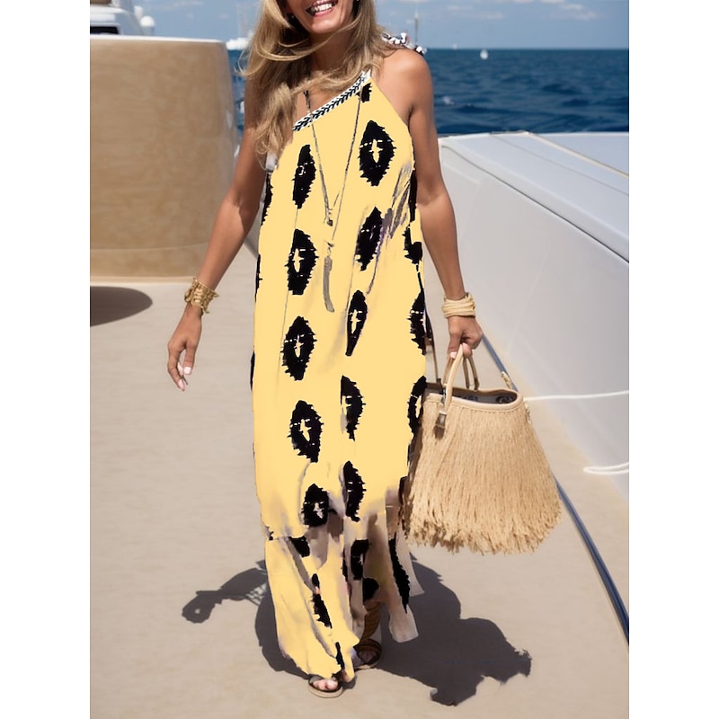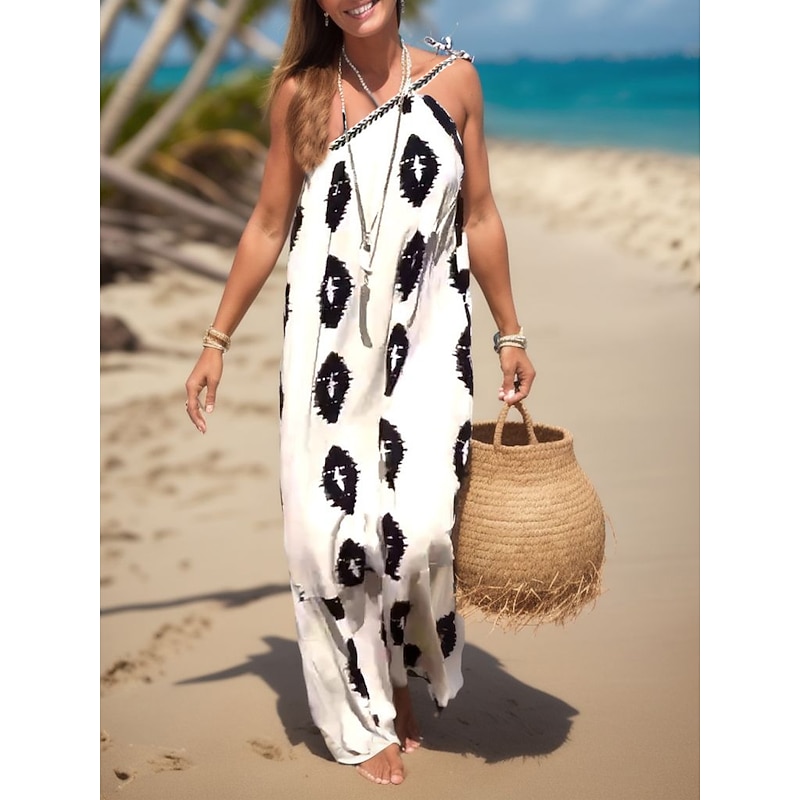 Women's Print Print Halter Neck Maxi long Dress Daily Vacation Sleeveless Summer Spring 2