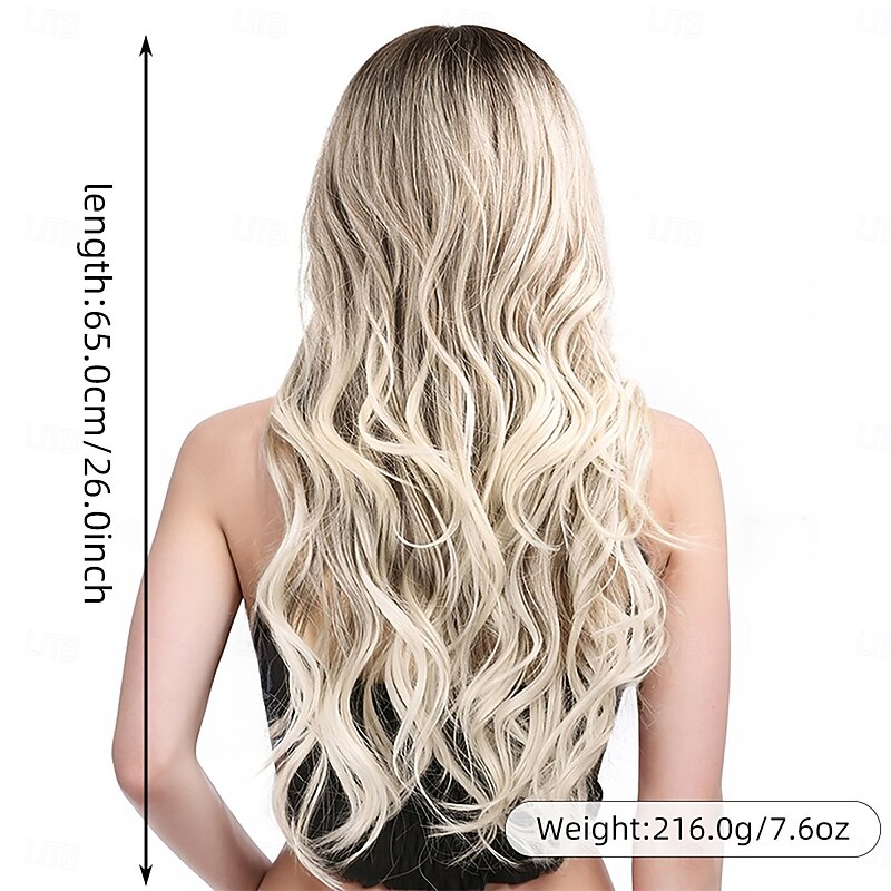 More information about Synthetic Wig Wavy Deep Wave Layered Haircut Deep Parting Machine Made Wig 26 inch A1 Synthetic Hair Women's Middle Part Elastic Comfortable Blonde White