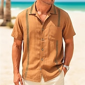 HOT ! Men's Shirt Linen Shirt Guayabera Shirt Summer Shirt Beach Shirt Summer Hawaiian Shirt Solid Color Vacation Street Brown Short Sleeve Camp Collar Summer Spring & Summer Clothing Apparel Patchwork