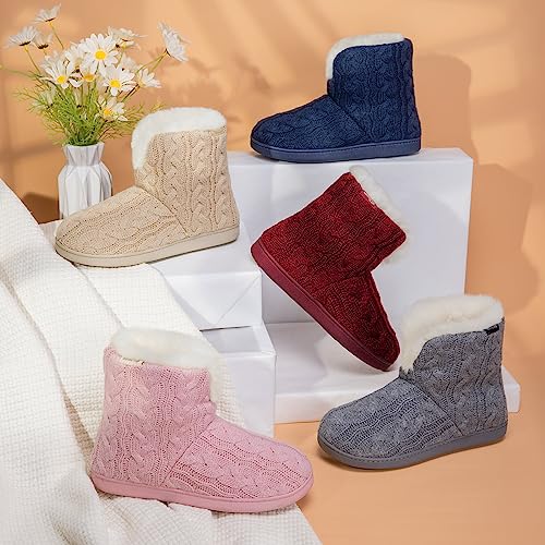 HomeTop Women's Knit Bootie Slippers Fuzzy Warm Memory Foam Indoor House Shoes 5