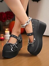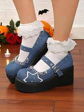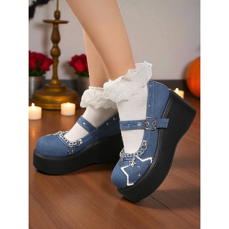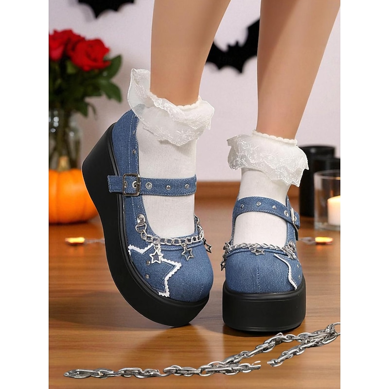 $42.99 - Women's Gothic Platform Mary Jane Shoes – Black Denim Platform Heels with Star Chains and Studded Straps for Halloween Parties and Streetwear Looks 2025. Shop for cheap Shoes For Women online? Buy at lightinthebox.com on sale today!
