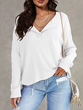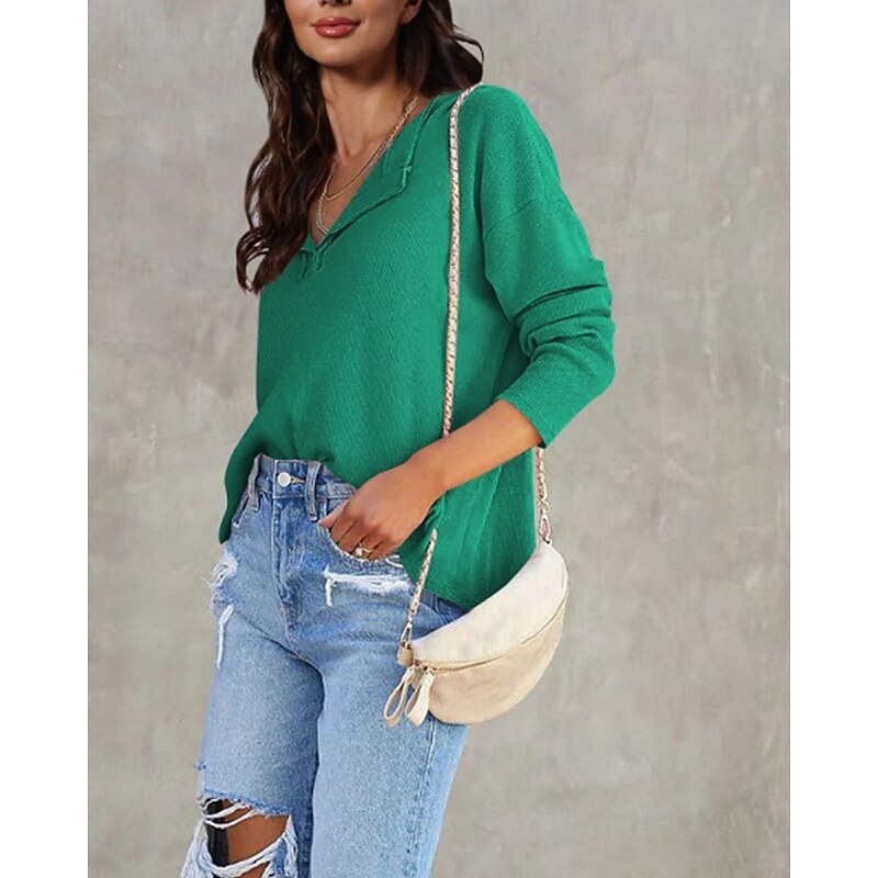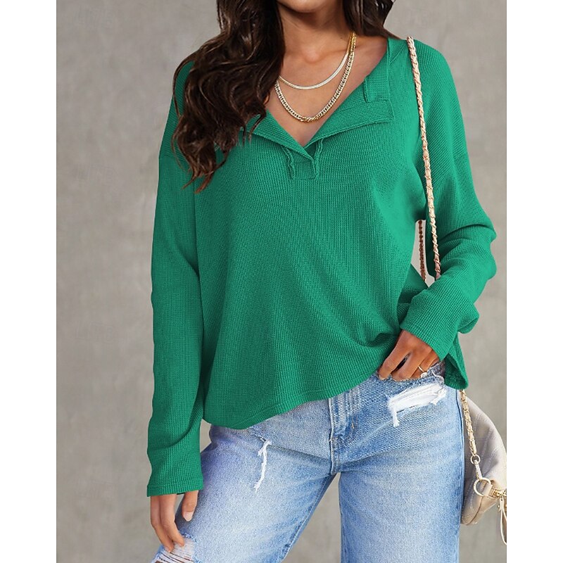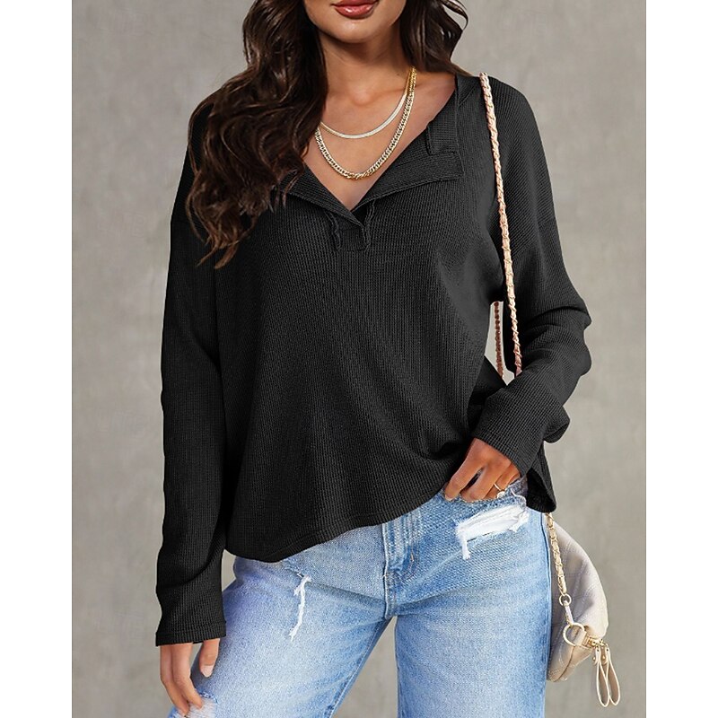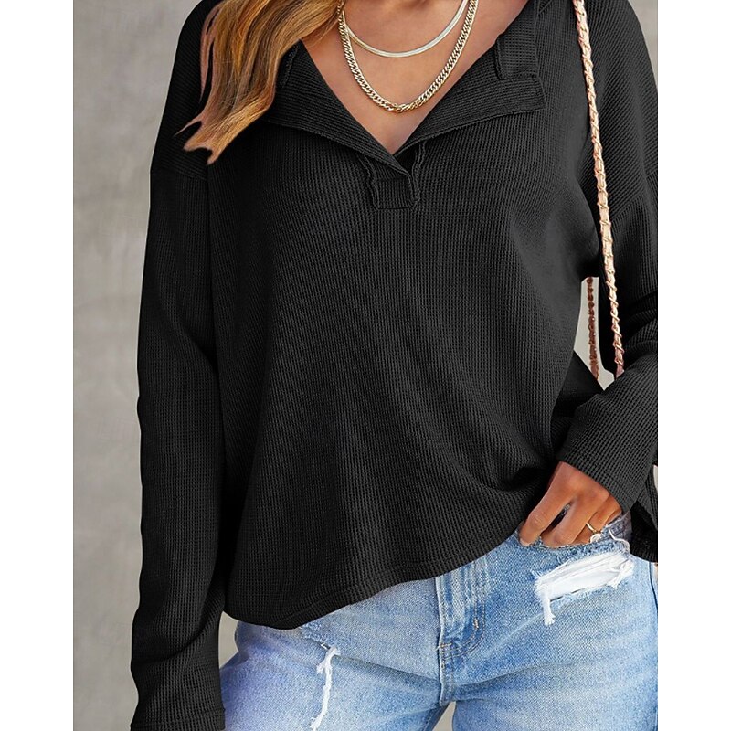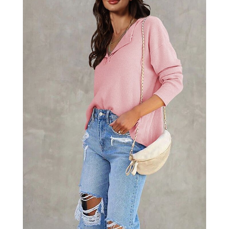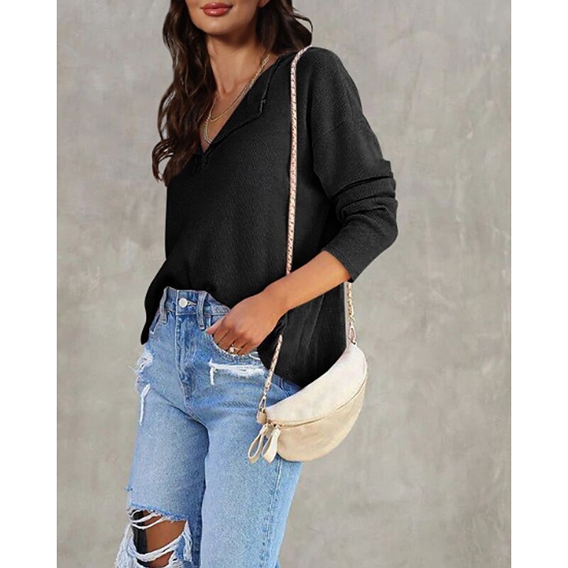 More information about Women's Texture Sweatshirt Blouse Plain Modern Casual Long Sleeve V Neck Regular Tops Daily Going out Black White Pink Brown Green Fall