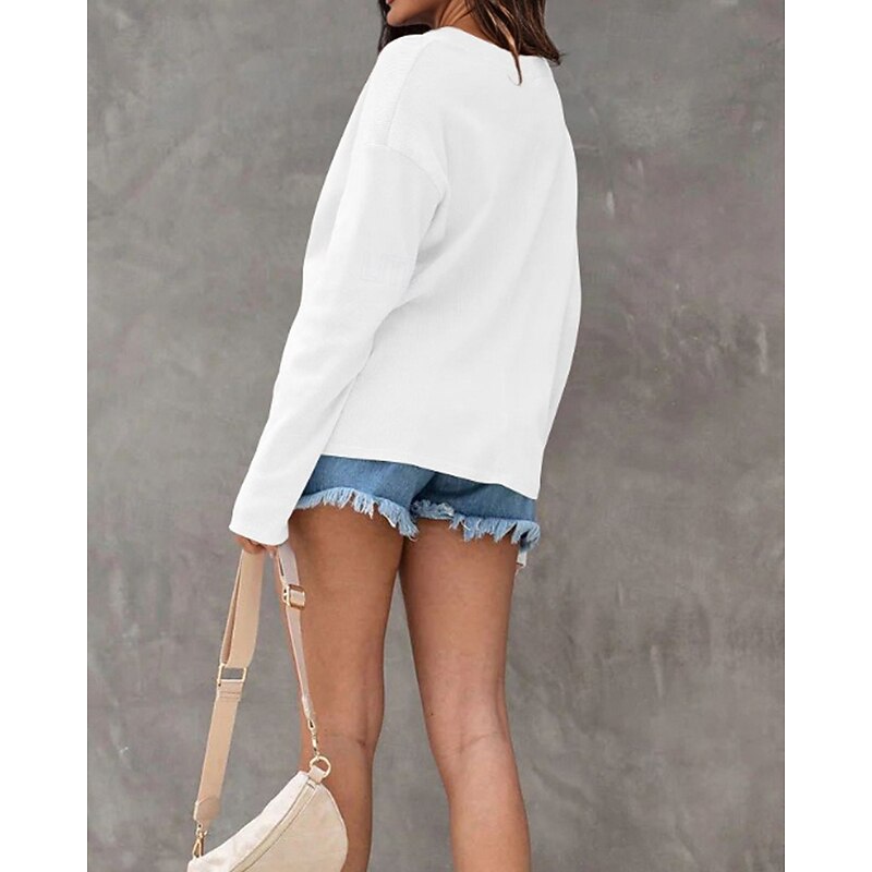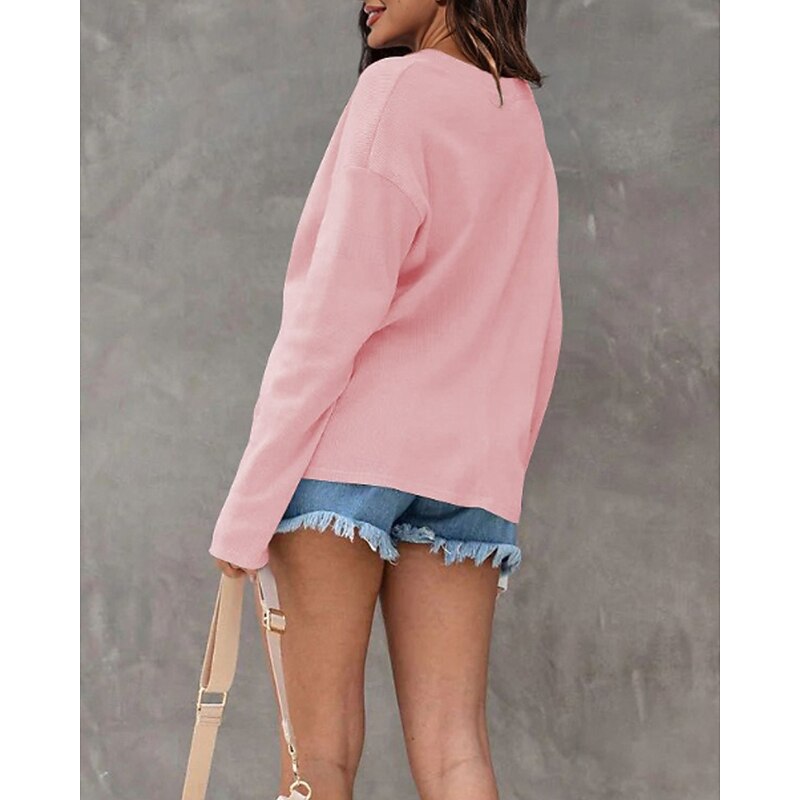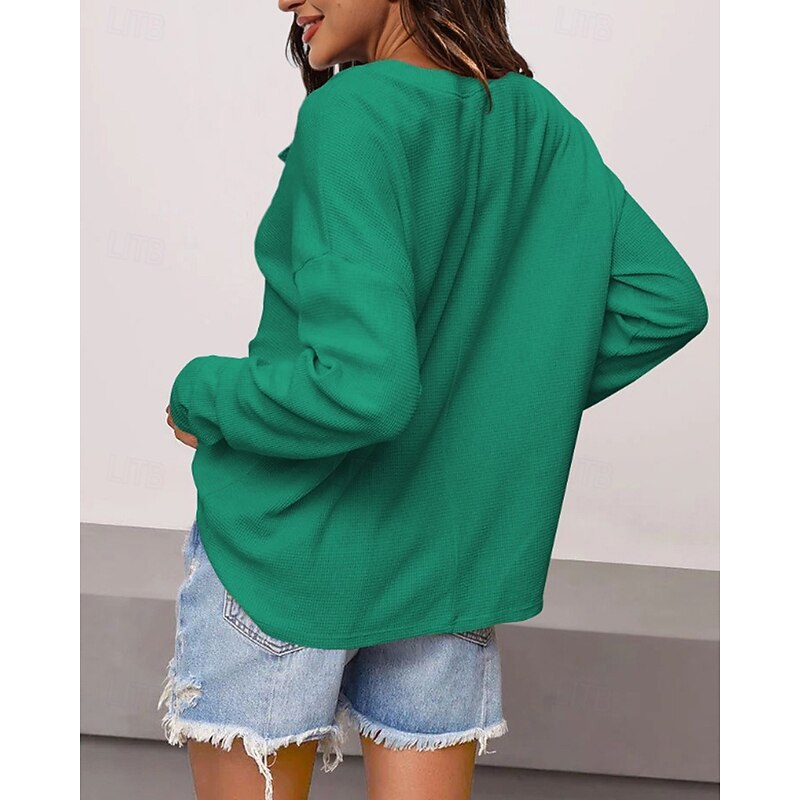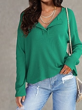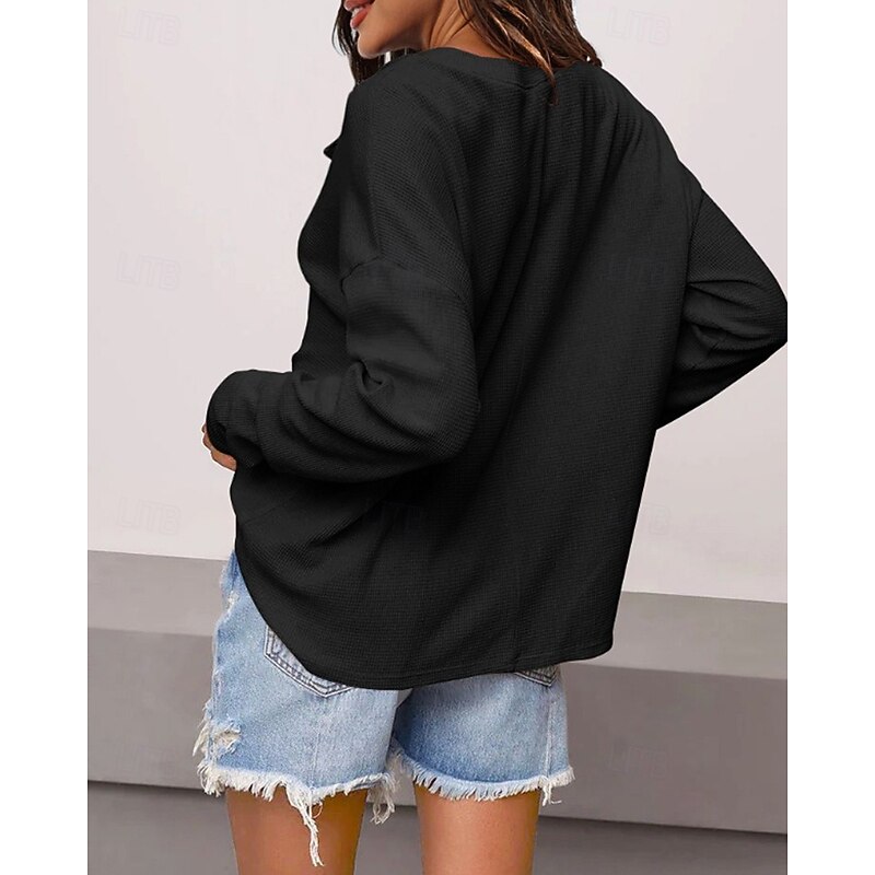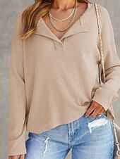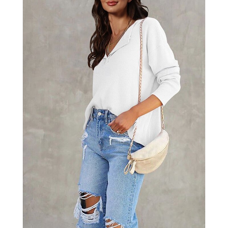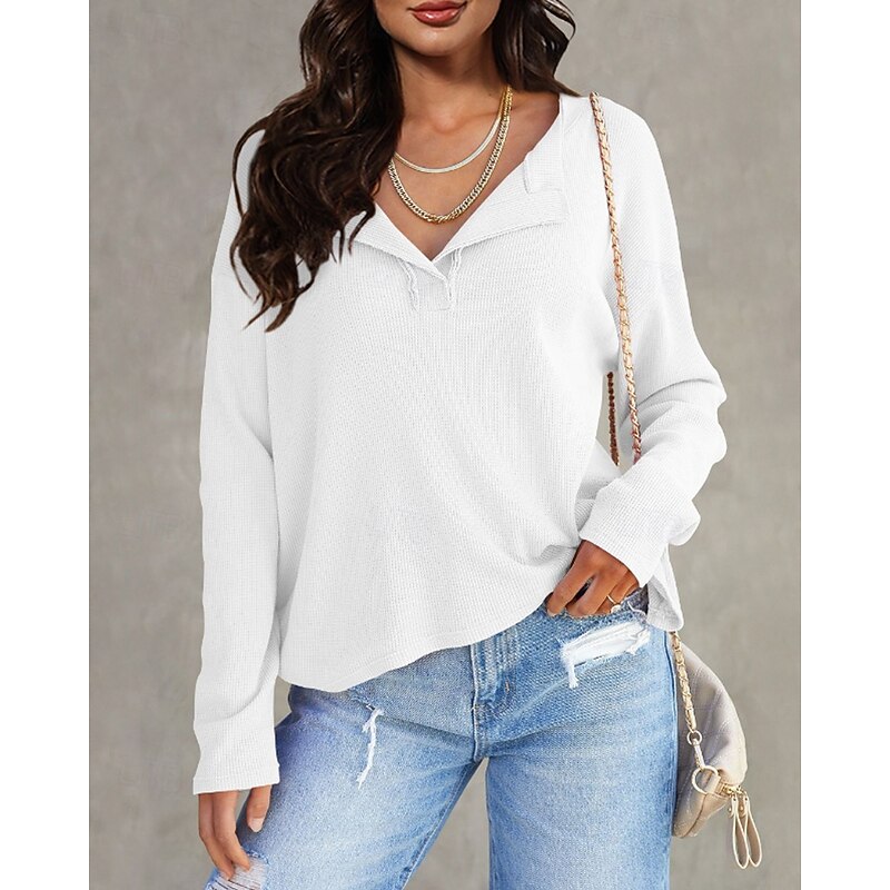 More information about Women's Texture Sweatshirt Blouse Plain Modern Casual Long Sleeve V Neck Regular Tops Daily Going out Black White Pink Brown Green Fall
