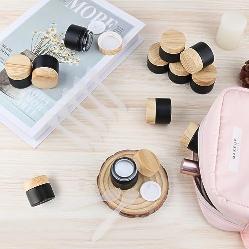 12 Pack 10g/0.34oz Frosted Glass Cream Jar Empty Sample Storage Jars Cosmetic Container Pot with Plastic Wood Grain Pattern Lid for Face Cream Lotion Eye Shadow - Black 6