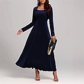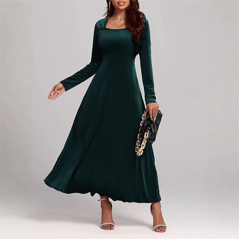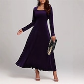 More information about Women's Midi Dress Velvet Dress Cocktail Dress Elegant Vintage Fashion Outdoor Party Party Evening Wear Regular Fit Plain Long Sleeve Square Neck Red Blue Dark Green Purple Spring Autumn