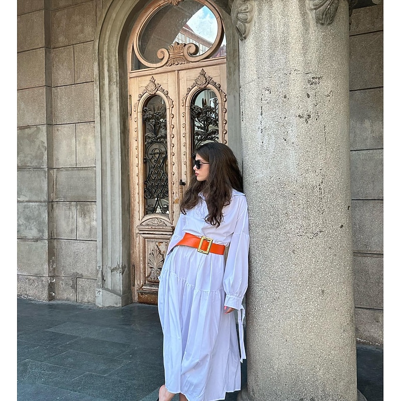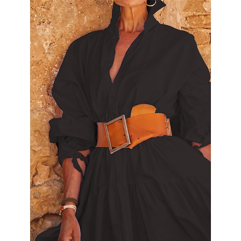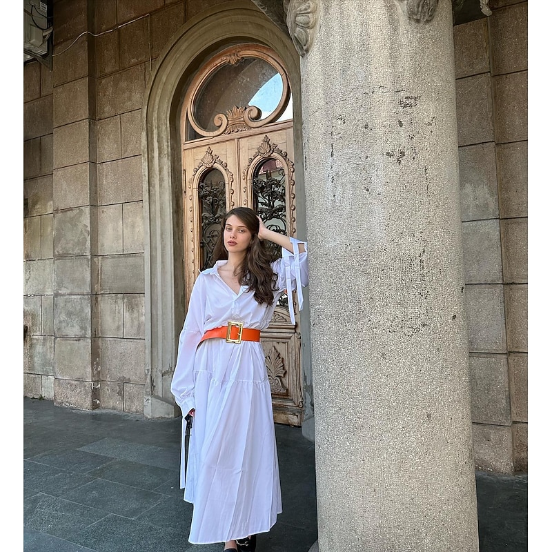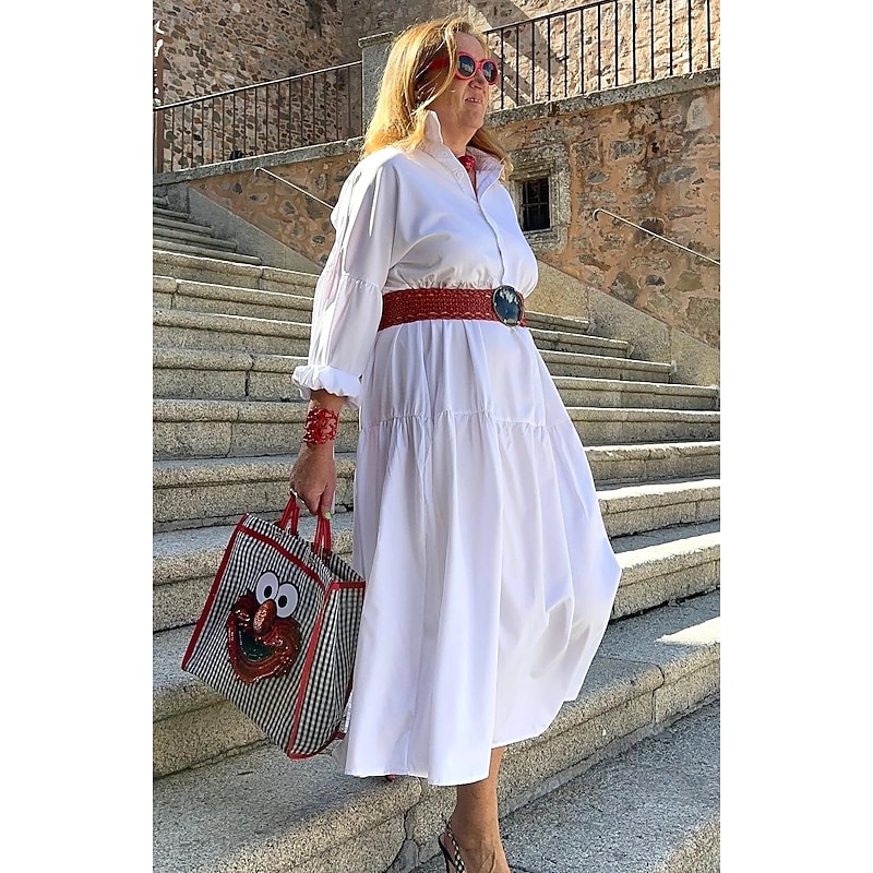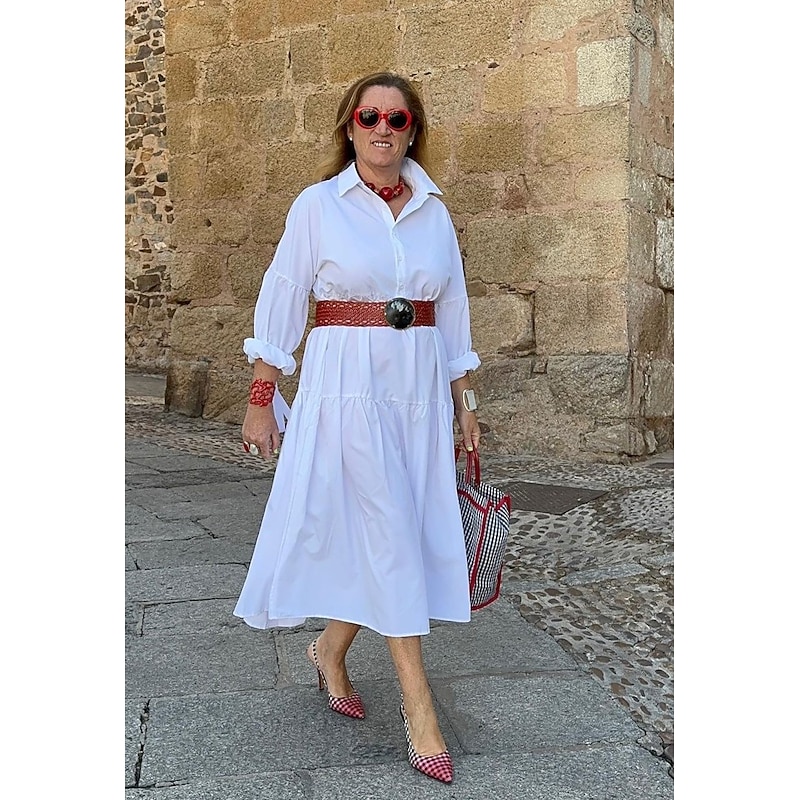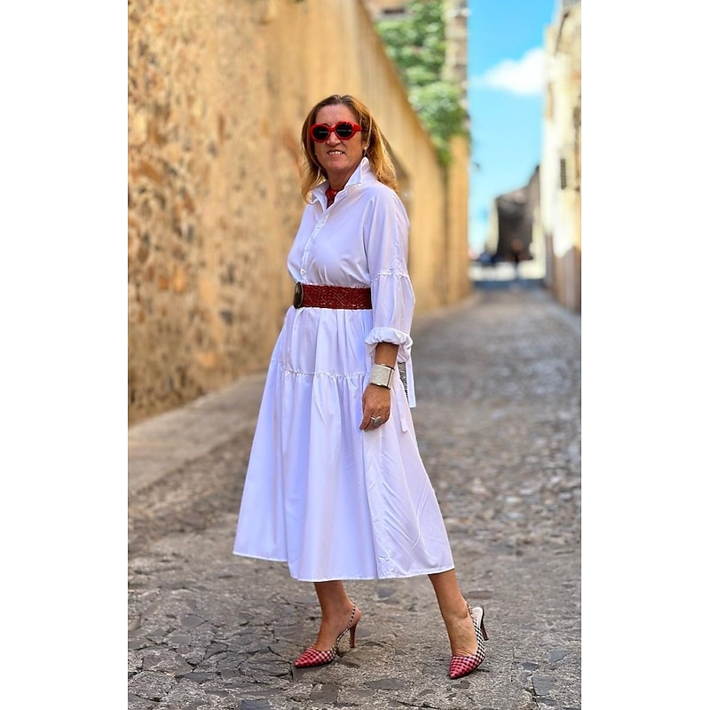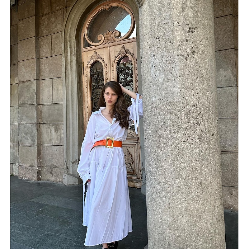 More information about Women's White Dress Shirt Dress Casual Dress Maxi long Dress Outdoor Daily Polyester Fashion Casual Shirt Collar Lace up Button Long Sleeve Summer Spring Regular Fit Pure Color