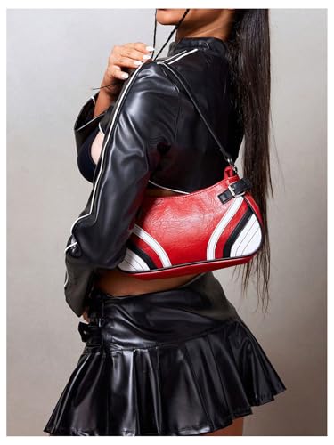 More information about Verdusa Women's Punk Colorblock PU Leather Shoulder Bag Top Handle Underarm Bag