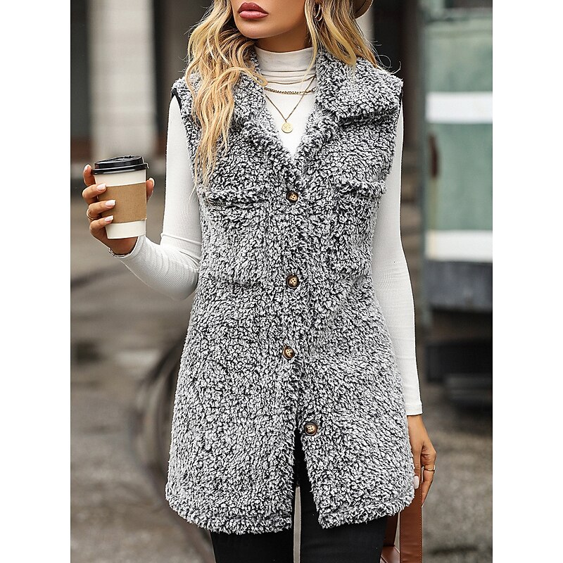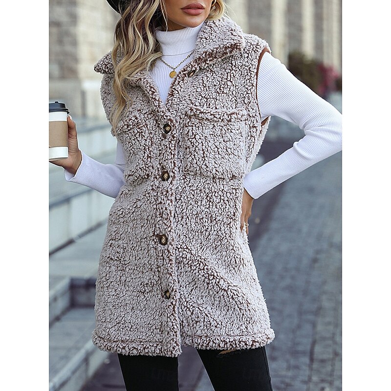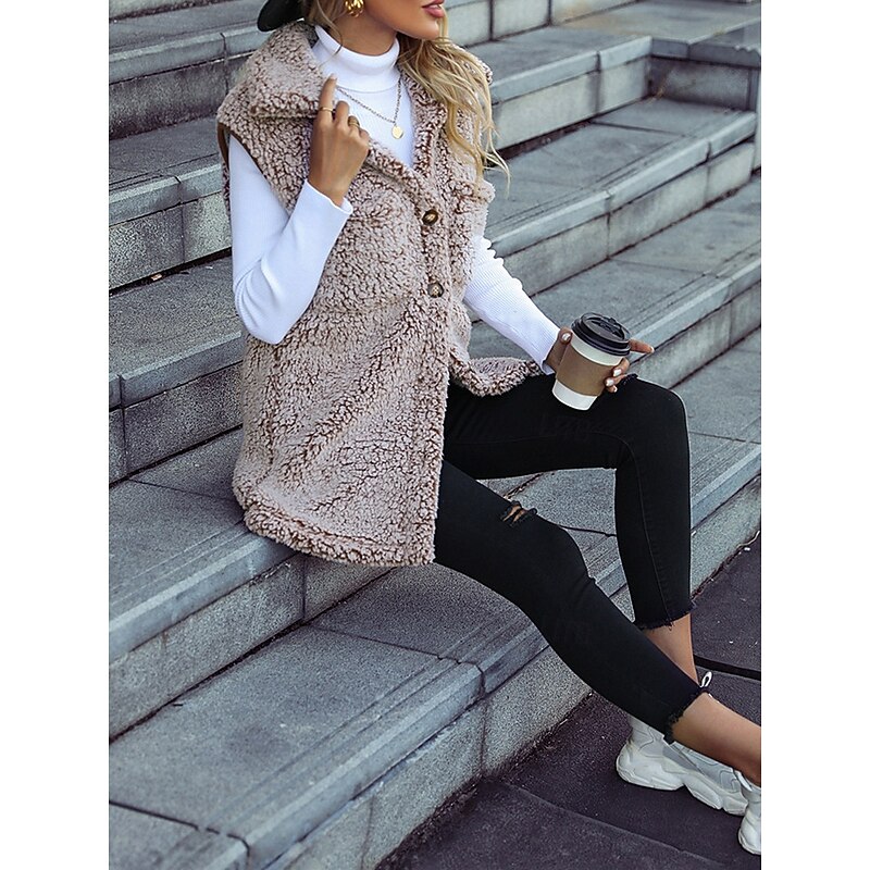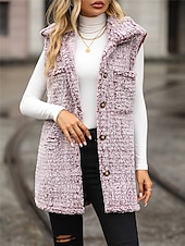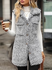 More information about Women's Fleece Jacket Fleece Vest Teddy Coat Warm Breathable Pocket Fleece Lined Casual Plain Vacation Street Daily Wear Going out Single Breasted Regular Turndown Regular Fit Sleeveless Outerwear