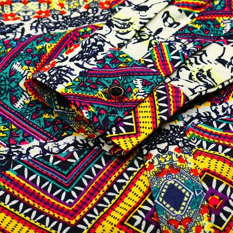 Retro Vintage Boho 1970s Shirt Hippie Patchwork Psychedelic Fancy Dress Men's Halloween Carnival Street Dance Retro Theme Party Festival Adults' Shirt 10