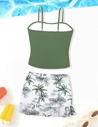 Girls Tankini Swimsuits Two Piece Tropical Print Pleated Bathing Suit with Ruffle Drawstring Skirt Swimwear 9-16T 3