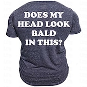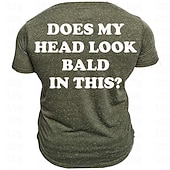 Men's Graphic Does My Head Look Bald in This T Shirt Short Sleeve T shirt 3D Print Crew Neck Shirt Retro Vintage Casual Street Style Sports Outdoor Holiday Going out Blue Army Green Dark Blue Spring