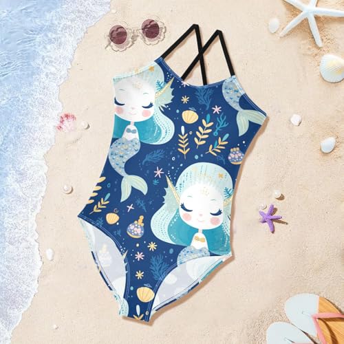 Yuiboo Fairy-Tale Mermaids Blue Swimsuits for Girls 1-Piecing Bathing Suits Toddler Girls Swim Suit Swimwear 3T 1