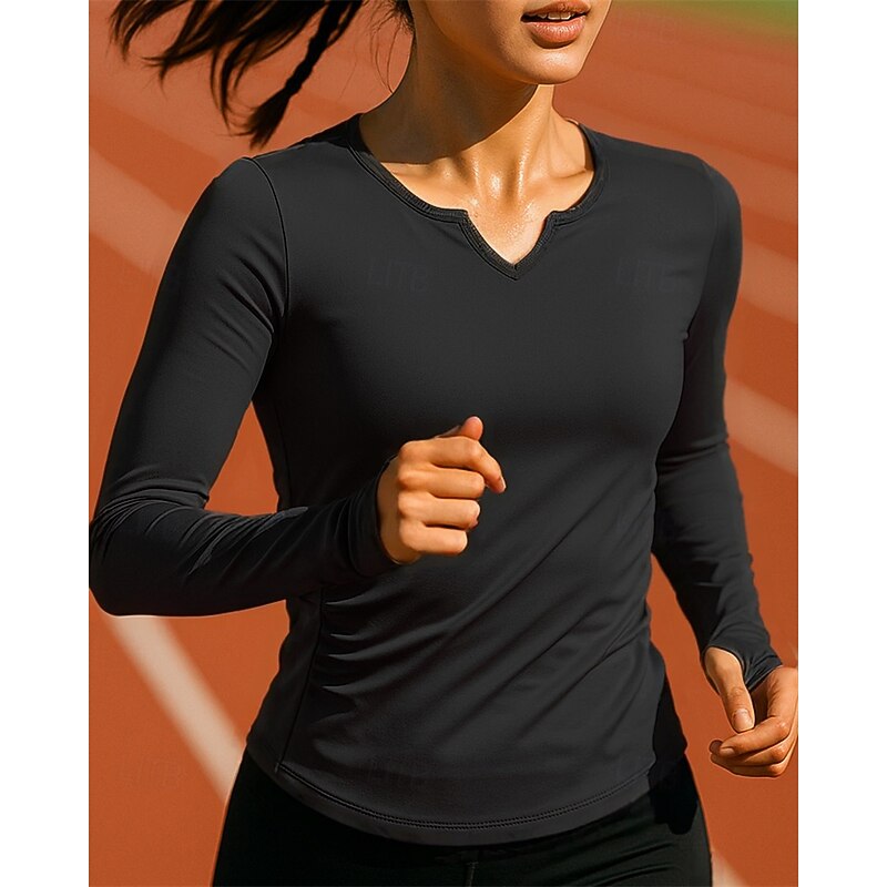 Women's Running Top Running Shirt Slim Long Sleeve Tee Tshirt V Neck Solid Colored Quick Dry Lightweight Elastic Breathable Tennis Golf Running Sportswear Activewear Black Purple Green 11