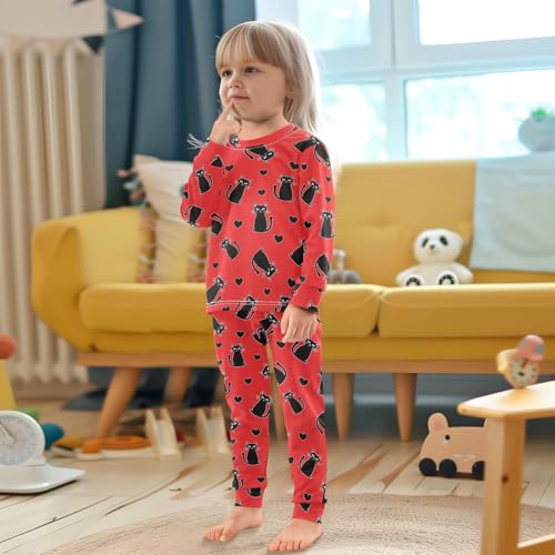 Pajama Sets Long Sleeve Black Cats Red Background Soft Comfy Sleepwear 2 Piece PJS 3-8T 3
