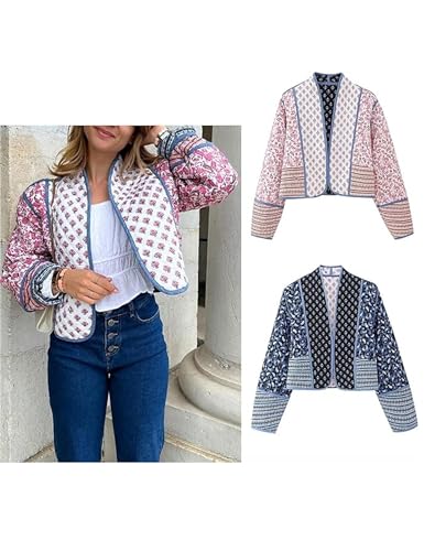 • Design:Women's cropped puffer jacket outerwear with long sleeve,special flower printed,open front,loose fit and soft material,which make the women's padded cardigans more fashion and show your beauty.