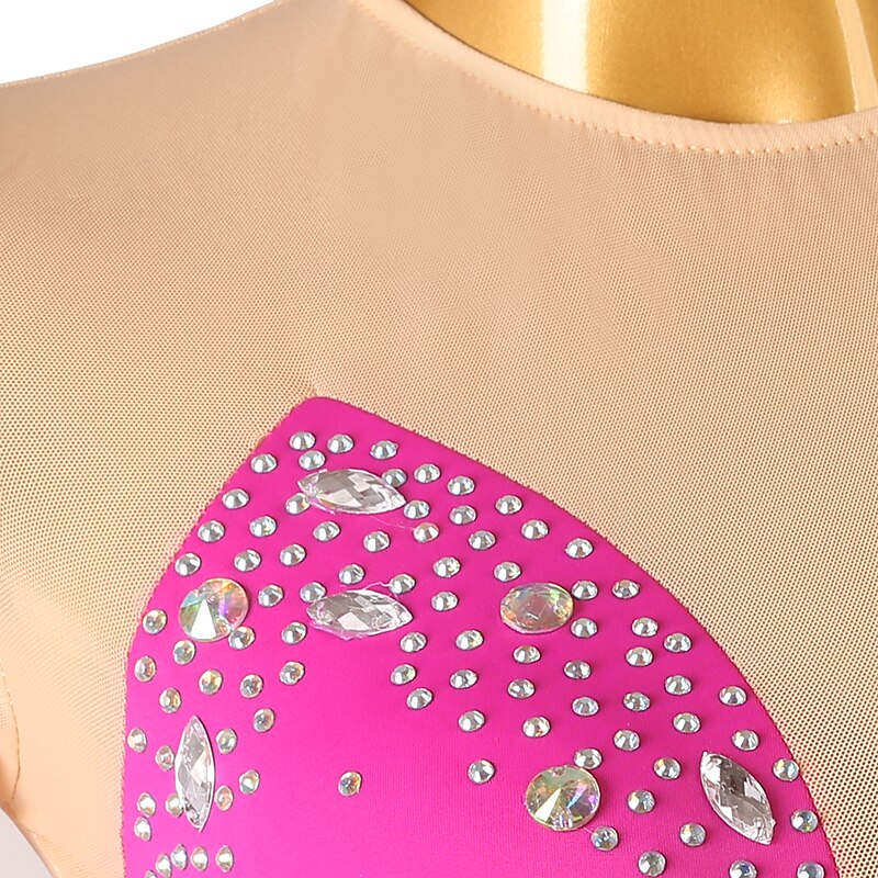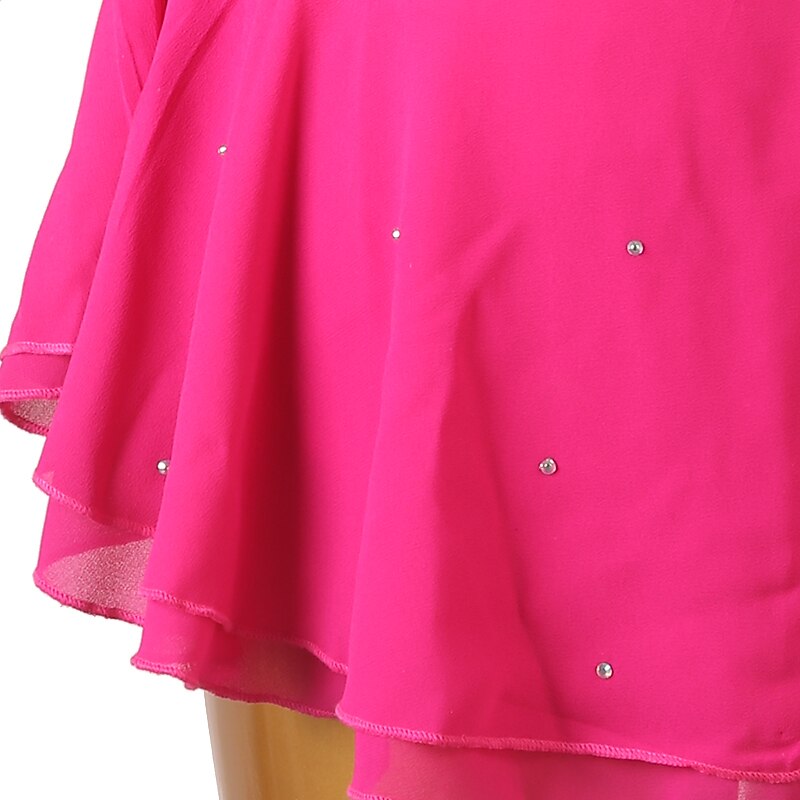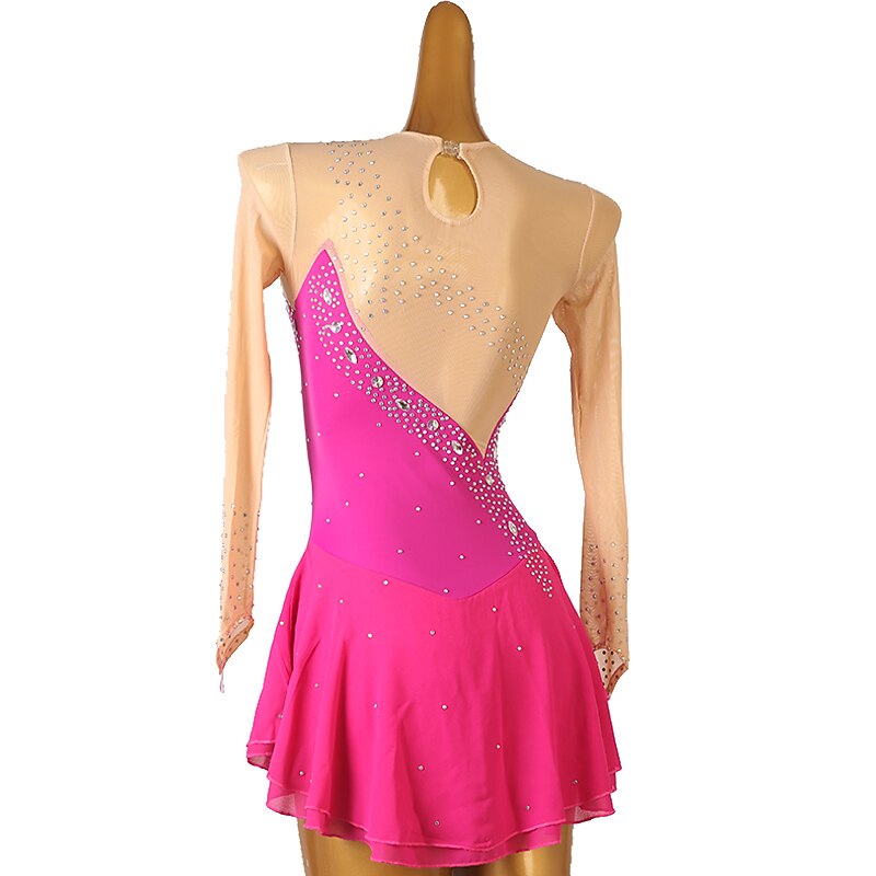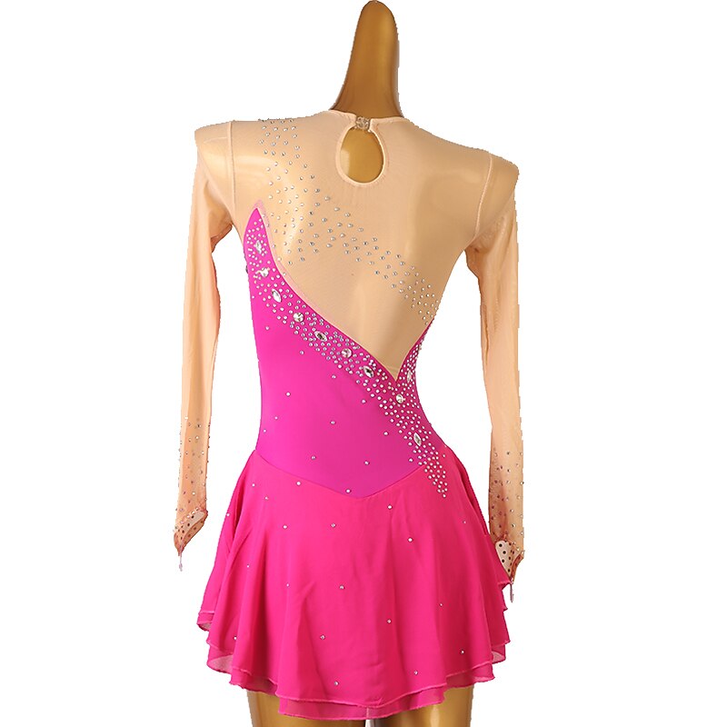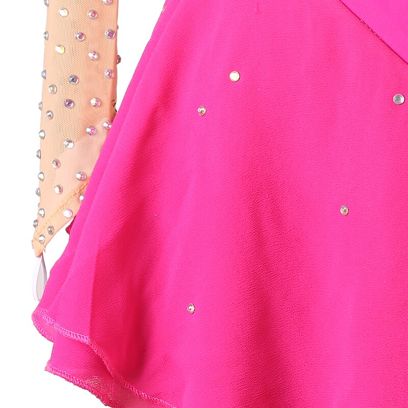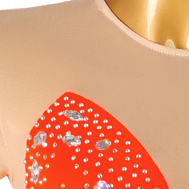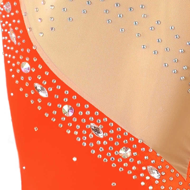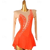 More information about Figure Skating Dress Women's Girls' Ice Skating Dress Orange Rose Red Patchwork Open Back Mesh High Elasticity Training Competition Skating Wear Classic Crystal / Rhinestone Long Sleeve Ice Skating