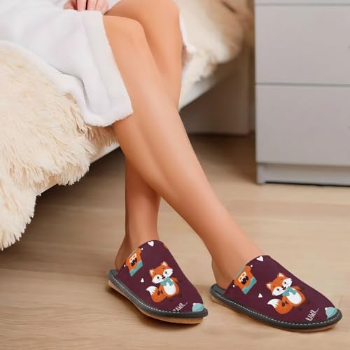 More information about Slippers for Women Cute Foxes with Robot Soft Fuzzy Women's Slippers Indoor and Outdoor Shoes