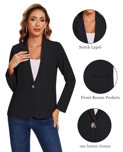 • 【Feature】:Long sleeve blazer ,Open front blazer suit jackets with one button closure, Notched lapel collar, Front Lined, Work office suit jackets, Solid color, Blazer jacket suit for women work casual. Two functional welted pockets, perfectly carrying some necessity, or nailing a chic look.