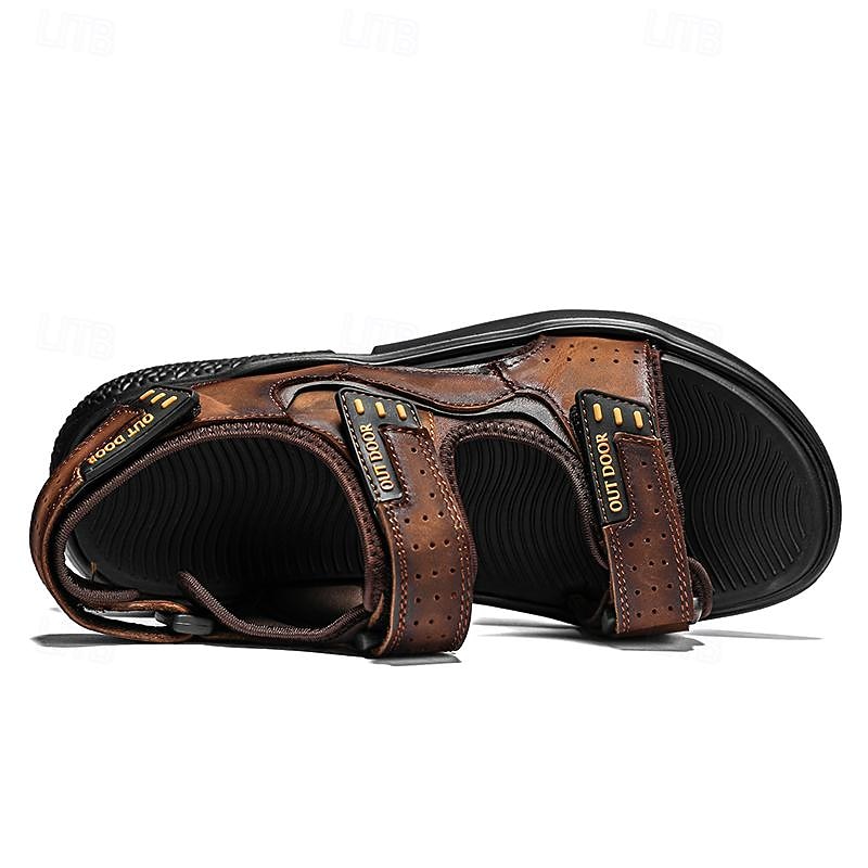 Men's Leather Outdoor Hiking Sandals - Comfortable and Durable with Adjustable Straps and Anti-Slip Sole for Summer Adventures 7