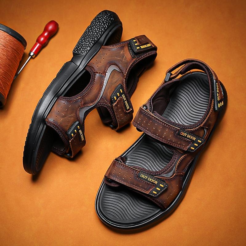 HOT ! Men's Leather Outdoor Hiking Sandals - Comfortable and Durable with Adjustable Straps and Anti-Slip Sole for Summer Adventures