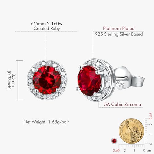 • Sterling Silver Earrings: These round ruby stud earrings are made of solid 925 real silver with thicker platinum plating, high polished for long lasting shine, not tarnished, nickel lead free, absolutely hypoallergenic for sensitive ears, and post does not bend