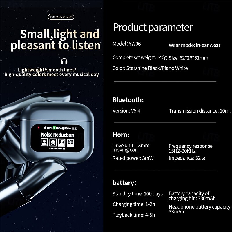More information about YW06 True Wireless Headphones TWS Earbuds In Ear Bluetooth 5.3 LED Light Sports ENC Environmental Noise Cancellation for Apple Samsung Huawei Xiaomi MI Outdoor Trekking Running Office Business