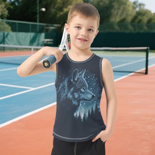 Boys Tank Top Shirts Forest Wolf Animal Sleeveless T-Shirts Crew Neck for Kids Clothing Children 5