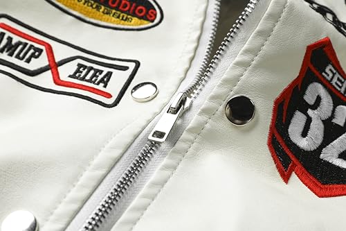 Fabric type: 100% PolyesterCare instructions: Hand Wash OnlyOrigin: ImportedDESIGN FEATURES: fashionable cropped motorcycle jacket with stand-up collar and edgy embroidered detailing for a fashion-forward lookMATERIAL: High-quality PU leather construction offers durability and a classic leather appearance while remaining lightweightVERSATILE WEAR: Perfect for spring through fall seasons, this jacket adds a bold statement to both casual and dressy outfitsPRACTICAL DETAILS: Features secure zip closure, functional pockets, and adjustable waist tabs for a customized fitSTYLE OPTIONS: Available in multiple sizes with figure-flattering cropped cut that pairs well with high-waisted bottoms Perfect for everyday use. supreme materials and excellent craftsmanship ensure long-lasting durability.
