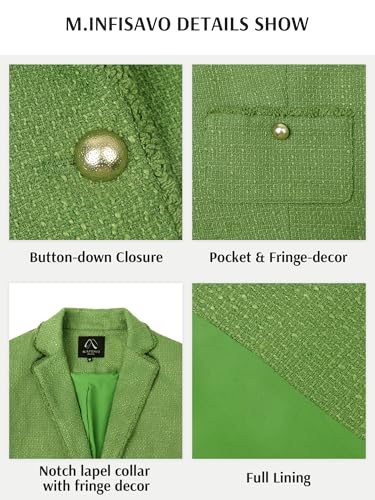 M.Infisavo Women’s Cropped Tweed Jacket Blazer with Pockets Long Sleeve Open Front Notch Lapel Cardigan Elegant for Casual