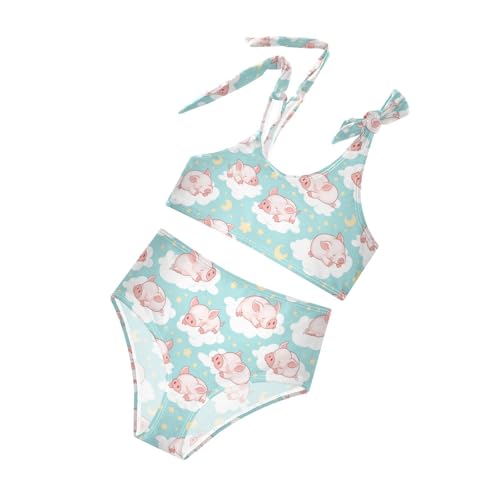 Wusikd Pink Piglets Sleeping Girls Swimsuits Two Piece Clouds Stars Swimwear Bikini Set for for Girls Size 3T