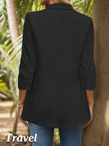 Mina Self Women's 3/4 Sleeve Blazers Ruched 2025 Fall Shawl Collar Open Front Casual Trendy Work Office Jackets Pockets