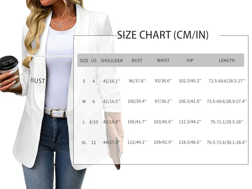 Fabric type: Polyester BlendCare instructions: Machine WashOrigin: ImportedFabric & Fit:This 3/4 sleeve blazer is made of polyester, it's lightweight and skin - friendly,ensuring a comfy wearing experience.It caters to diverse body types, ensuring comfort and style.Design Details: This lightweight blazer is features an open - front design, making it a fashionable cardigan - like outerwear. The shawl collar adds a touch of sophistication. The sleeves have a ruched detail, giving them a unique texture. There are flap pockets on the front, which are both practical and decorative. It can be easily paired with a simple T - shirt and jeans for a chic, casual - yet - polished outfit.Appropriate Occasions:This lightweight jackets perfect for all occasions, be it business - casual settings, work environments, social gatherings, or daily outings. It is suitable for these festivals such as New Year's Day, Thanksgiving Day and Christmas Day and so on.Styling Suggestions: Pair this oversized Women's Outerwear with high - waisted trousers for a professional look at work. For a more casual vibe, combine it with denim shorts and a basic camisole. When going for a dressy event, match it with a midi skirt and strappy heels.Care Guidelines:We recommend hand-washing the blazer in cold water or using a gentle machine cycle with mild detergent. Welcome To Enter Mina Self Store To Choose|To Provide You With a Careful After-Sales Service| Perfect for everyday use. supreme materials and excellent craftsmanship ensure long-lasting durability.