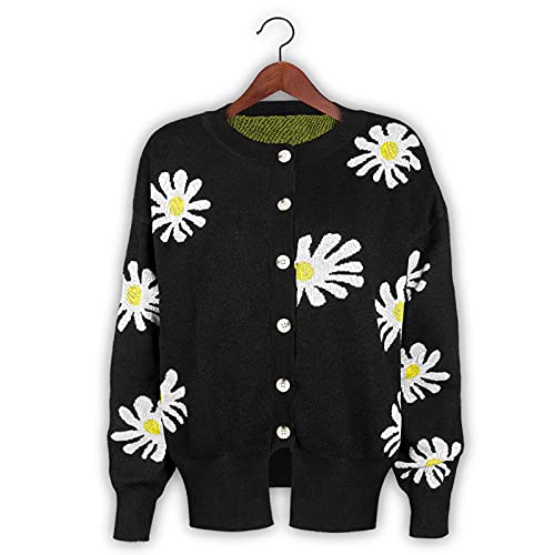 Cute Sun Flower Cardigan Sweaters Womens 2024 Lightweight Button Down Coats Open Front Casual Knit Sweaters Outwear