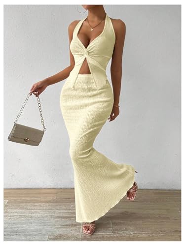 SHENHE Women's Sexy 2 Piece Outfits Twist Front Split Halter Crop Top and Bodycon Maxi Skirt Set