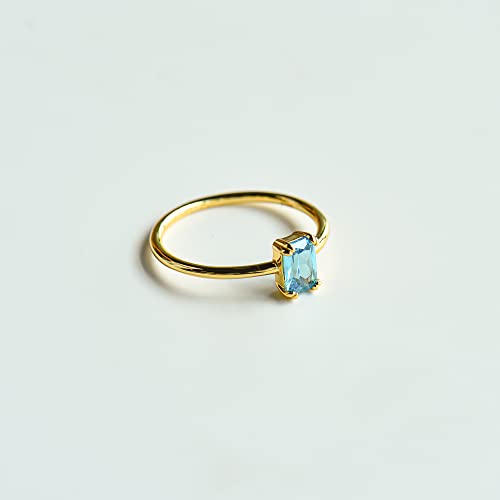 in-demand ! BLOSSOM & HUE Essential Stackable Baguette Ring | 18K Gold Plated .925 Sterling Silver | Minimalist Blue Gemstone for Her