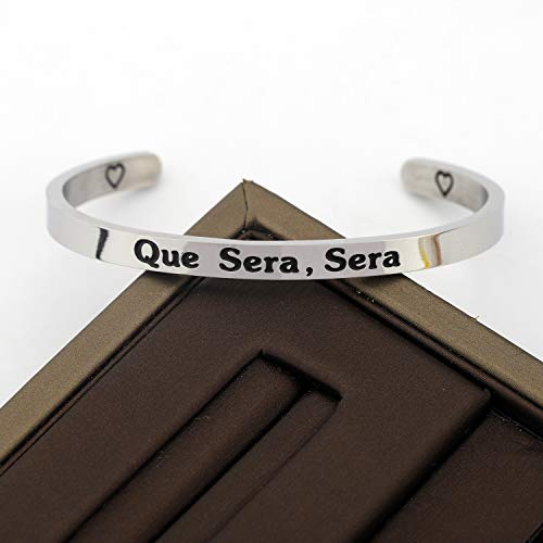CENWA Que Sera Sera Inspiration Bracelet French Phrase Motivational Gift Hanukkah Gift for Mom, Sister, finest Friend, Girlfriend