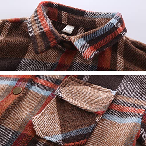 Girls Casual Long Sleeve Plaid Shirt Kids Toddler Retro Oversized Flannel Button Down Dovetail Blouse Top
