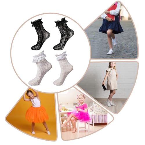 in-demand ! 4 Pairs lace ruffle socks Lace Socks for Women Ankle Ruffle,White Black Mesh Coquette Socks Lace Ruffle Socks Lolita Socks Cute Trendy Socks Dress Socks for Girls