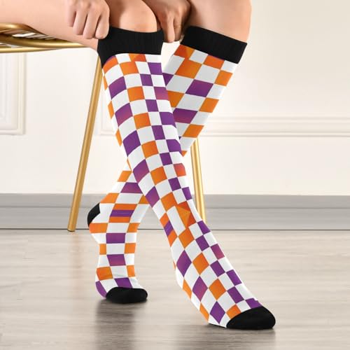 in-demand ! Dussdil Orange Purple Halloween Plaid Compression Socks for Women Men Circulation Long Knee Sock for Big Kids Teen Sport Gym Running Stockings