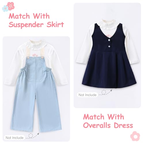 Fabric type: 100% CottonOrigin: ImportedNeck style: High NeckSleeve type: Long SleeveSoft and Breathable Cotton: Made from high-quality cotton, this long sleeve shirt ensures your baby girl stays comfortable and cozy, providing a soft touch against her skin.Versatile Wardrobe Essential: This white top is perfect for layering under sweaters, jackets, or dresses, or can be worn on its own for a clean and timeless look.Ideal for Fall Layering: Designed to keep your toddler warm during the cooler fall months, this long sleeve bottom shirt is a must-have for transitioning seasons.Simple and Classic Design: The basic yet timeless design of this top makes it easy to pair with any outfit, offering endless styling possibilities for both casual and dressy occasions.Warm TipsοΌTo maintain the quality and appearance of the garment, low-temperature washing is recommended, suitable for hand washing or machine washing in the same color. Due to shooting light and monitor and other factors will cause a slight color difference, please prevail in reality. Perfect for everyday use. supreme materials and excellent craftsmanship ensure long-lasting durability.