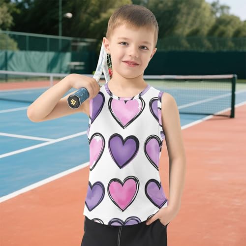 in-demand ! JUNZAN Purple Pink Heart Watercolor Tank Top for Boys Sleeveless Kids Vest Sports Clothes for Beach Swim Work Out 3T