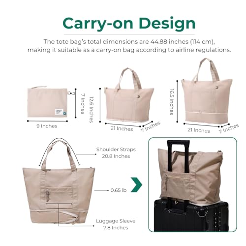 • Compact & Space-Saving Design – This foldable tote bag expands to 21''L x 12''W (16''W) x 7''H, providing ample storage for travel essentials, yet conveniently folds down to 7.9'' x 7'' for compact storage. Easily fits into backpacks, duffle bags, or suitcases, saving space when not in use.