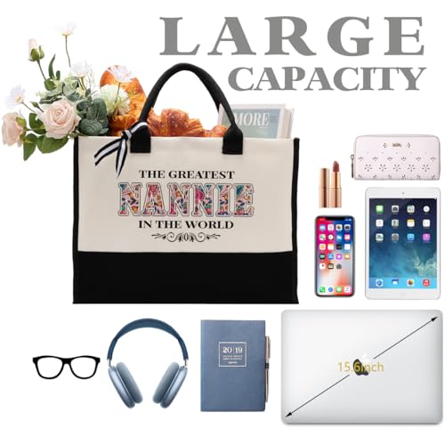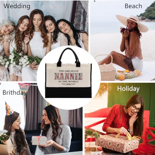 More information about Nannie Gift for Mother's Day, Canvas Tote Bag for Gifting, Nannie Cotton Canvas Tote Bag, Shoulder Beach Bag, Novelty Present for Nannie, Nannie Canvas Bag Gift, The Greatest Nannie In the World