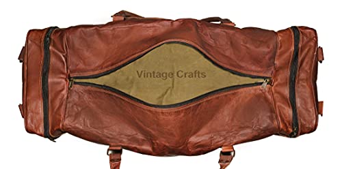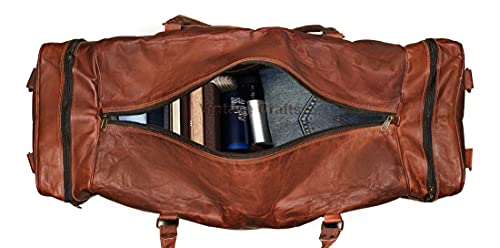 Brief content visible, double tap to read full content. Full content visible, double tap to read brief content. Bundles with this item Previous page Leather Duffel Bag With Additional Replacment Strap -18% $110.99 Was: $135.98 Next page See all bundlesFULL GRAIN LEATHER : Our bags are made from full grain leather and lined with solid canvas and are Handcrafted by skilled craftsmen100% Genuine Leather With Durable Canvas Lining, Size 32 Length x 12 height x 10 WidthBig main compartments for clothing /travel and sports gear etc. Two Side pockets for shoes / accessories etc. Two Front pocket for cash /mobile and huge big front pocket. Dual Adjustable shoulder Straps with Shoulder Pad and durable leather.The leather color can vary between darker and lighter hues due to the handcrafted nature of the tanning process.With a mutlipurpose use and a classy distressed Vintage inspired look which never goes out of style , This bag is a great gift idea for Fathers Day , Birthdays , Valentines Day , Christmas, Graduation, Back To College Or Any Occasion Which Calls For A Gift . Makes a great gift for professionals, artists , students and all sorts of officials. The bag can be used as a leather duffle bag for men and women sports gym overnight camping travel bag. gift idea. Perfect for everyday use. first-class materials and excellent craftsmanship ensure long-lasting durability.