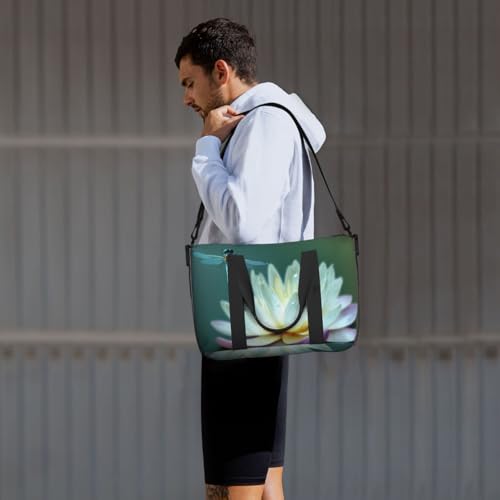 Style Meets Functionality: Style and practicality harmonize in our Dragonfly with Water Lily duffel bag. Express your exceptional fashion sense with confidence while effortlessly carrying all your essentials. No longer do you need to make compromises between fashion and functionalityDurable And Waterproof And Easy To Carry: The Dragonfly with Water Lily travel bag is made of high-quality polyester fabric which is durable, waterproof and tear resistant. With an adjustable, detachable shoulder strap, you can carry it as a handbag, tote bag, carry-on bag or crossbody bagLarge Capacity: Dimensions of the large handbag Waterproof Weekender Bag are 41 x 29 x 15 cm / 16.1 x 11.4 x 5.9 inches. The big compartment inside is spacious enough for carrying all your travel essentials on short trips or weekend trips: clothes, pants, footwear, cosmetics, toiletries, etcPortable Personal-Item: TSA-Free Duffle shoulder bag, fits perfectly under an airplane seat, The exterior zip pocket allows quick access to essential items during the flight. Additionally, it easily slides onto the handle of your suitcase easily and stays in place. Make airport travel hassle-freeWide Application Duffel Bag: Foldable and portable, your travel essentials. A perfect choice for you to carry all your sports, gym, weekend trips, daily use and travel essentials. Use as business travel bag, Hospital Bag for Labor and Delivery, travel carry on bag for airplane, personal item bag, travel holdall bag, gym tote bag Perfect for everyday use. first-class materials and excellent craftsmanship ensure long-lasting durability.
