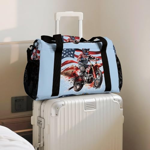U.S Flag Dirt Bike Motocross Gym Bag Travel Duffle Bags Shoulder Carry On Weekender Bag Hangbag for Women Men