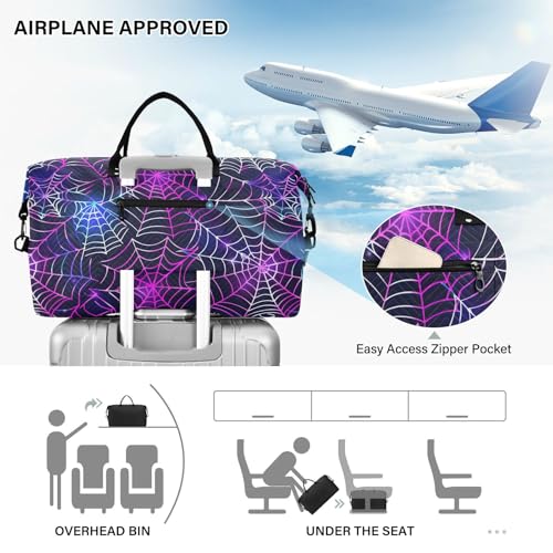 Halloween Travel Gym Bag, Halloween Spider Web A Weekender Overnight Duffle for Women with Toiletry Bag Travel Swim