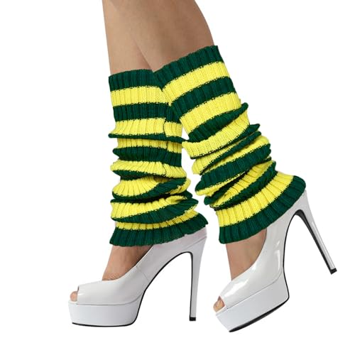 Benefeet Striped Leg Warmers for Women & Girls - Ribbed Knit smooth Colorful Long Warmers for 80s 90s Dance Party