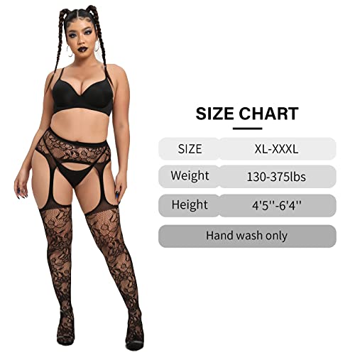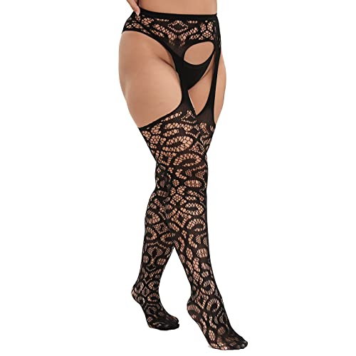 in-demand ! MANZI Plus Size Stockings Thigh High Fishnet Stockings Suspender Patterned Tights for Women (Pack of 2)